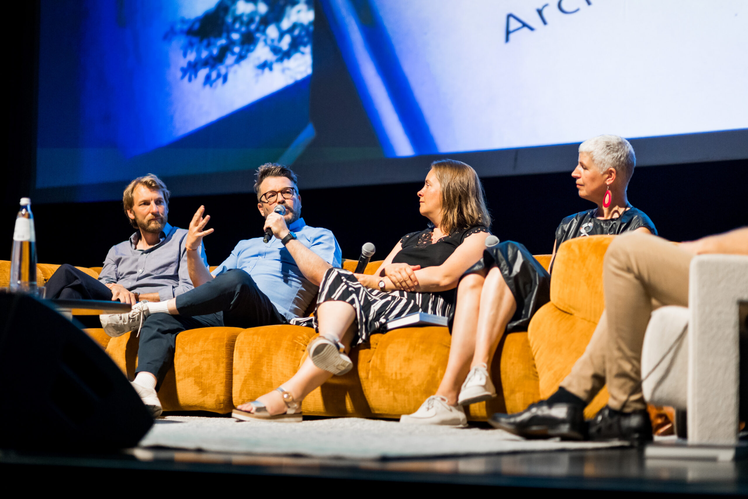 Aansluitend volgde een inspirerend panelgesprek onder leiding van Olav Grondelaers (VRT), dat dieper inging op de nood aan duurzame archiefzorg in de architectuursector.